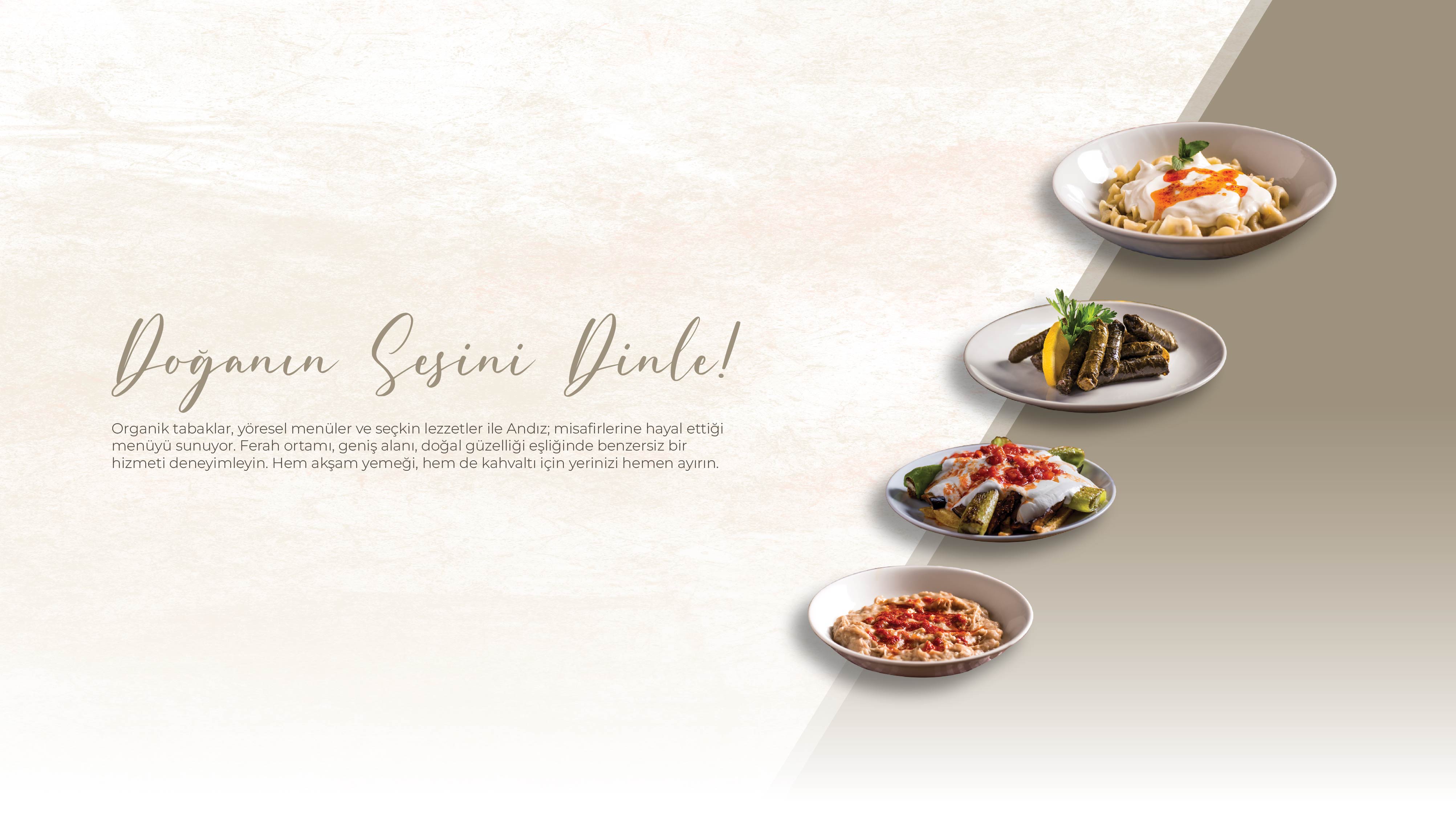 Yeşilin huzura dönüştüğü Andız Kuşadası'nda, kendini doğanın sesine bırakırken eşsiz lezzetlerin tadını çıkaracaksın.